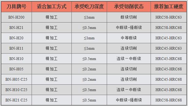 風(fēng)電齒輪、風(fēng)電軸承等大型零部件,多采用淬火鋼材質(zhì),硬度在HRC58-62。為應(yīng)對這類材質(zhì),華菱推出高硬度、高耐磨性的全貼面CBN刀具BN-H系列刀片。這個(gè)H系列包含多種刀具牌號(hào),不僅有BN-H200,還有適用于連續(xù)切削的BN-H05 CBN刀片,適用于輕斷續(xù)切削的BN-H10 CBN刀片,以及適用于強(qiáng)斷續(xù)切削的BN-H21CBN刀片等,必要時(shí)還可以添加涂層,以獲得更優(yōu)異的切削性能,提高加工精度和壽命。