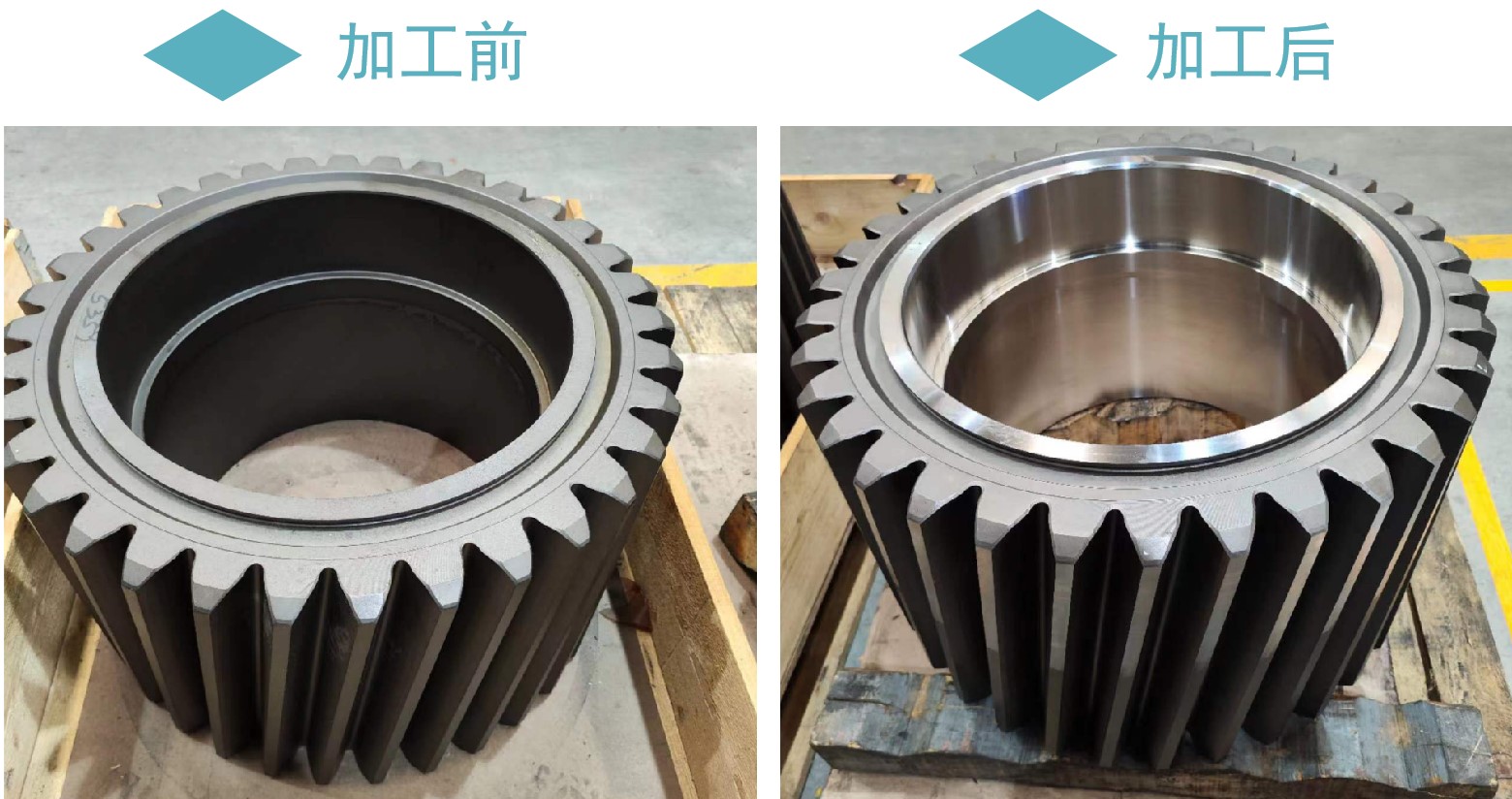 華菱CBN刀片加工風(fēng)電齒輪前后對比效果:
