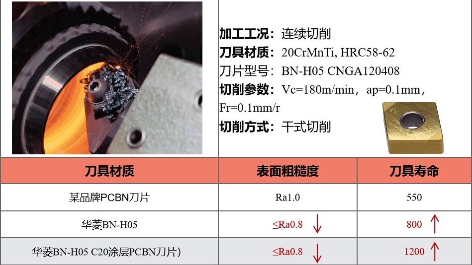 涂層PCBN刀片精加工齒輪的案例參數: