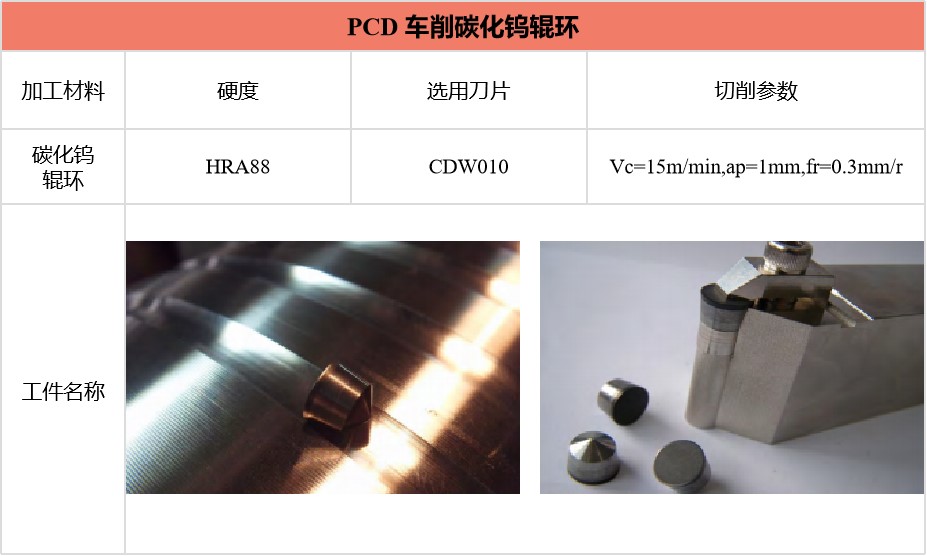 華菱新一代全貼面PCD刀具:針對(duì)風(fēng)電軸承球溝道硬車,華菱提供RNGN全貼面PCD/PCBN刀片,高耐磨性實(shí)現(xiàn)高質(zhì)量精加工。針對(duì)風(fēng)電葉片法蘭孔的鉆削,華菱超硬提供PCD全貼面U鉆刀片,具有優(yōu)異的耐磨性,主要以W形和S形為主,可轉(zhuǎn)位3-4次,降低生產(chǎn)成本,同時(shí)可承受更高的切削速度和進(jìn)給速度,配合剛性優(yōu)異的刀桿,在保持尺寸精度的同時(shí)實(shí)現(xiàn)穩(wěn)定高效的鉆削。針對(duì)碳化鎢輥環(huán)(硬度> HRA 88),華菱提供全貼面PCD刀片RCGX型號(hào)。